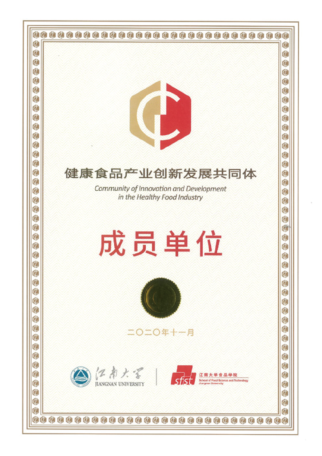 2020年11月 江南大學健康食品產業(yè)創(chuàng)新發(fā)展共同體成員單位